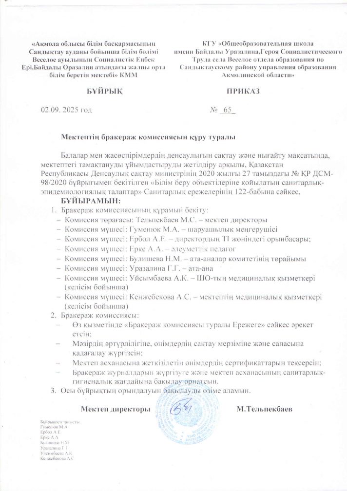 «Ақмола облысы білім басқармасының Сандықтау ауданы бойынша білім бөлімі Веселое ауылының Социалистік Еңбек Ері, Байдалы Оразалин атындағы жалпы орта білім беретін мектебі» коммуналдық мемлекеттік мекемесіне