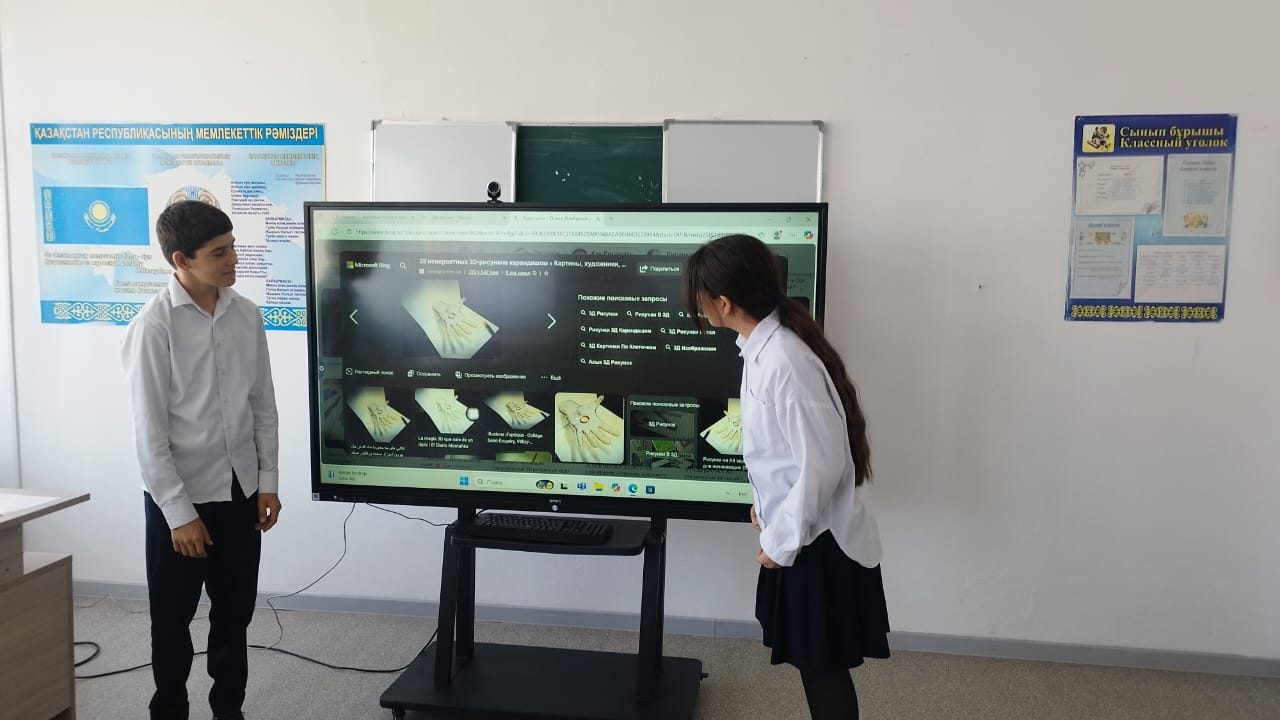 Бүгін 7Б сыныбында «Қазіргі заманғы өнердің стилистикалық бағыттарын зерттеуге негізделген практикалық жұмыс (2D немесе 3D форматында)» атты ашық өнер сабағы өтті.