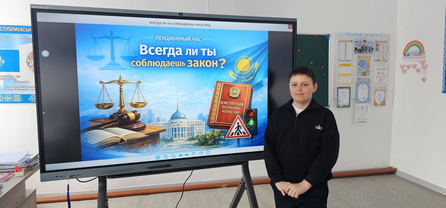 Бүгін 5-сыныпта «Сен әрқашан заңды сақтайсың ба?» тақырыбында лекциялық сағат өтті.